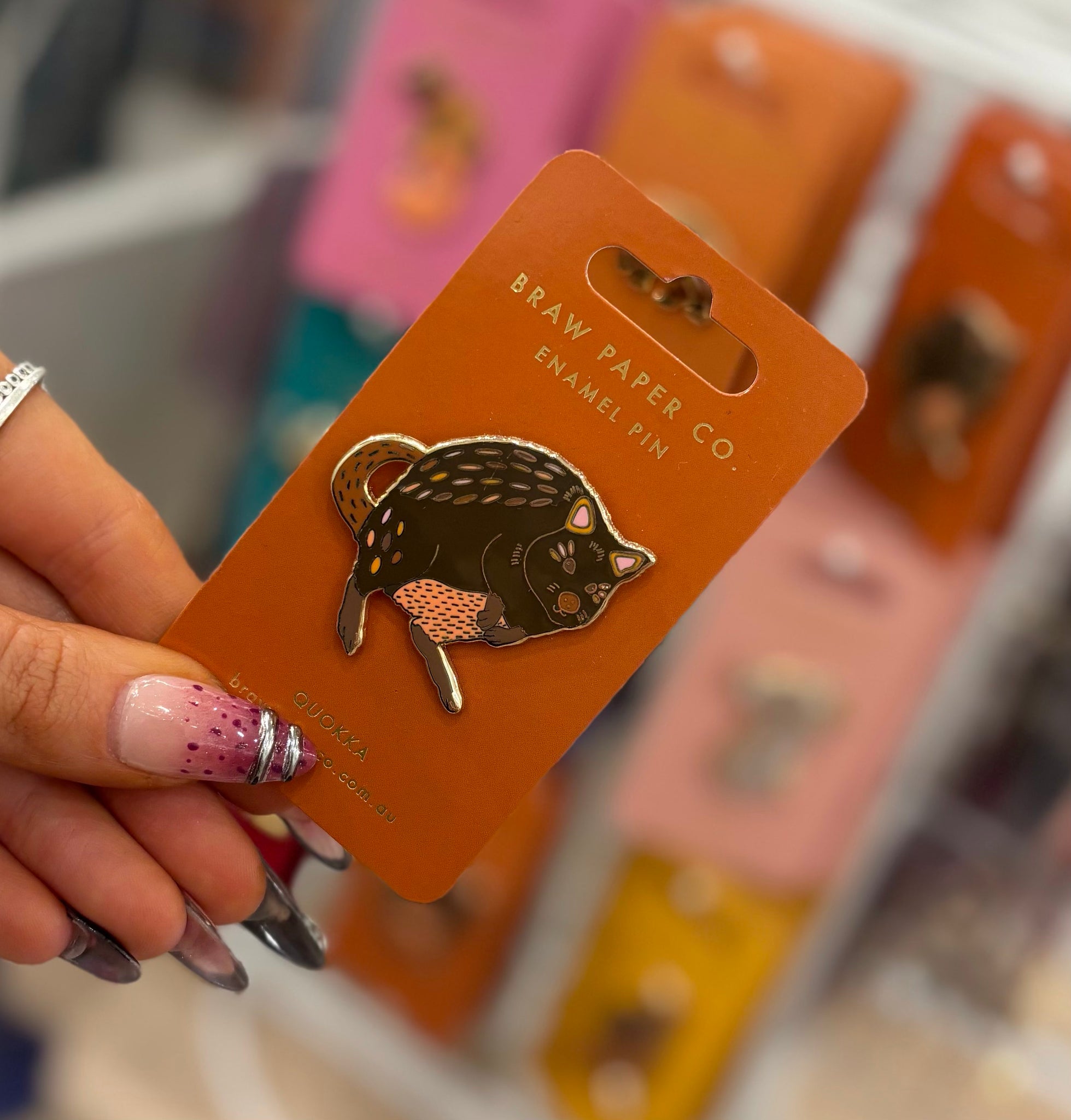 Pins measure approx. 4cm in width, but vary between designs. Pins are made of brass with a polished enamel glossy finish. Designs are in the same order as the photos.